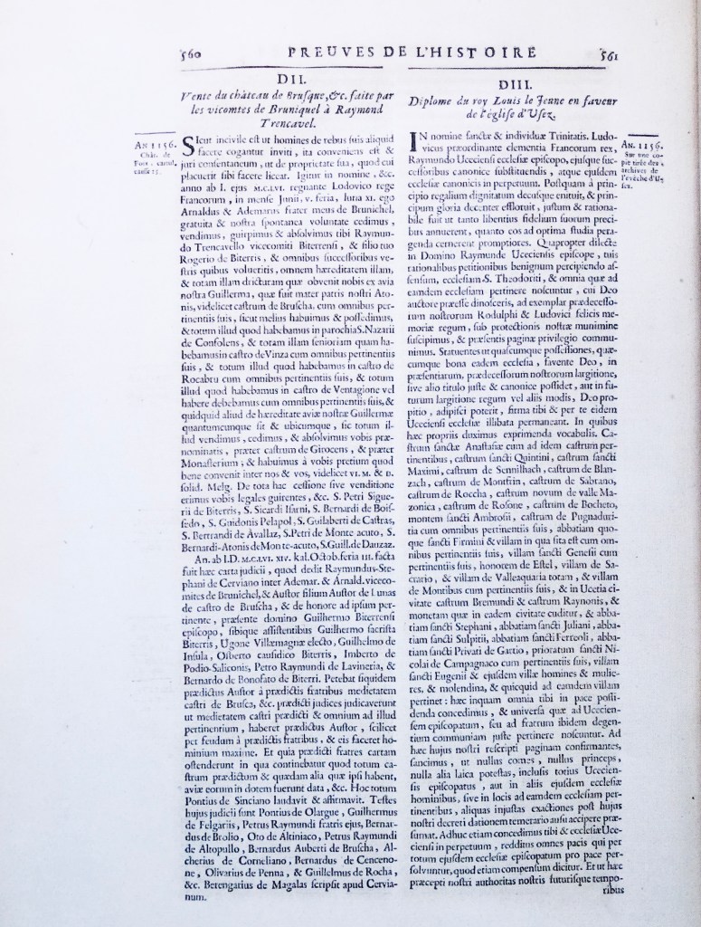 DEVIC et VAISSETE, Histoire générale de Languedoc, t.2, Paris, 1733, n°503, col. 561-562.